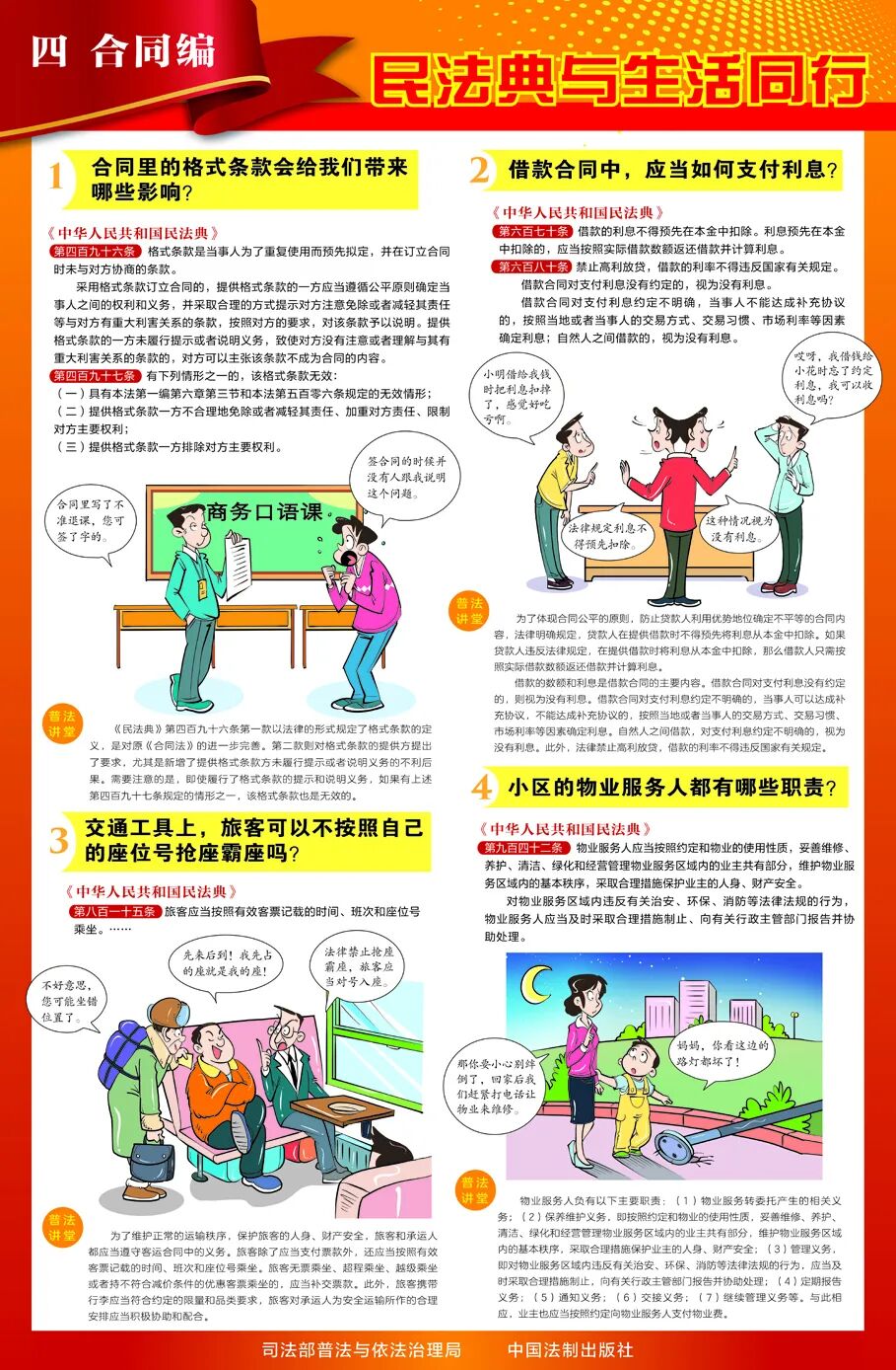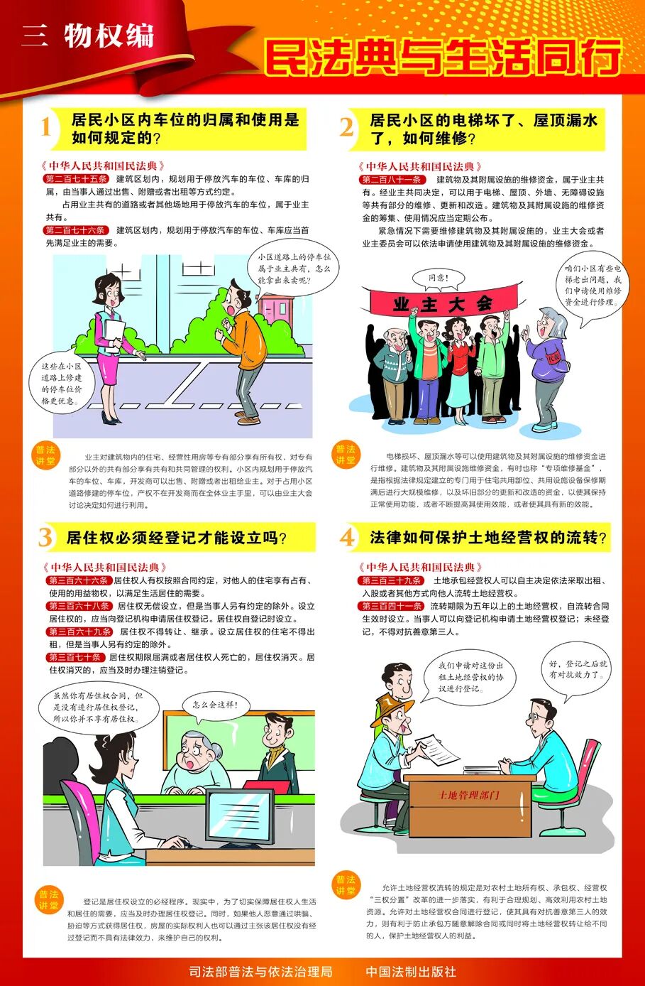 为深入贯彻落实习近平总书记关于广泛开展民法典普法工作的重要指示,司法部普法与依法治理局会同中国法制出版社编辑了《民法典与生活同行》系列挂图(一套9张),在智慧普法平台(中国普法网)发布,供各地各部门免费下载使用。