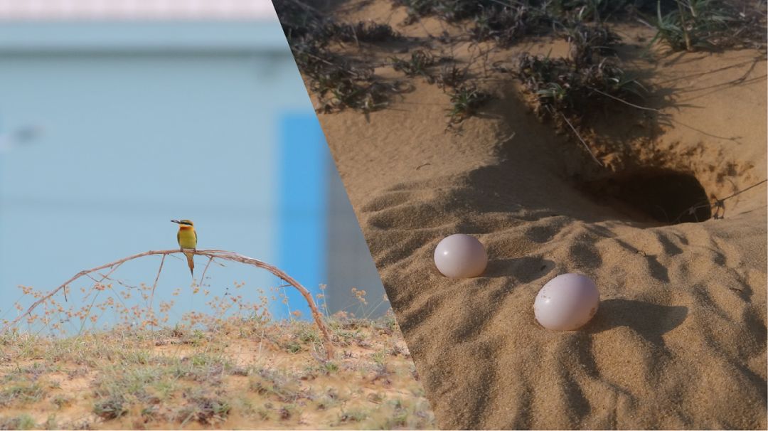 ▲栗喉蜂虎鸟在湛江钢铁筑巢安家