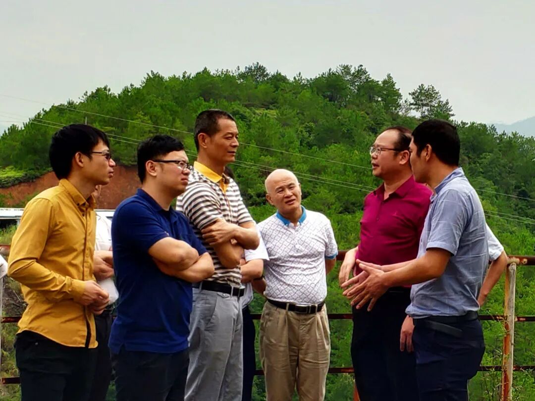 ▲谢辉(左二)在现场了解企业环评建设情况