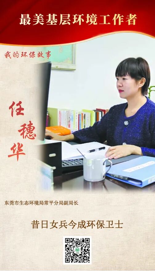 任穗华,现任东莞市生态环境局常平分局副局长。若非她自己提起,你可能不会想到,眼前这位灵巧秀气、留着齐耳短发的姑娘,曾经是一名女兵,而且在部队里一待就是19年。2014年转业后,任穗华成为东莞的一名环保工作者,为守护我们的碧水蓝天贡献着力量。她说,军营生涯带给她刚强的意志;而成为母亲后,生活多了份柔软,这让她迫切想多做一些事,想把热爱环保的种子,传播得更远一点。