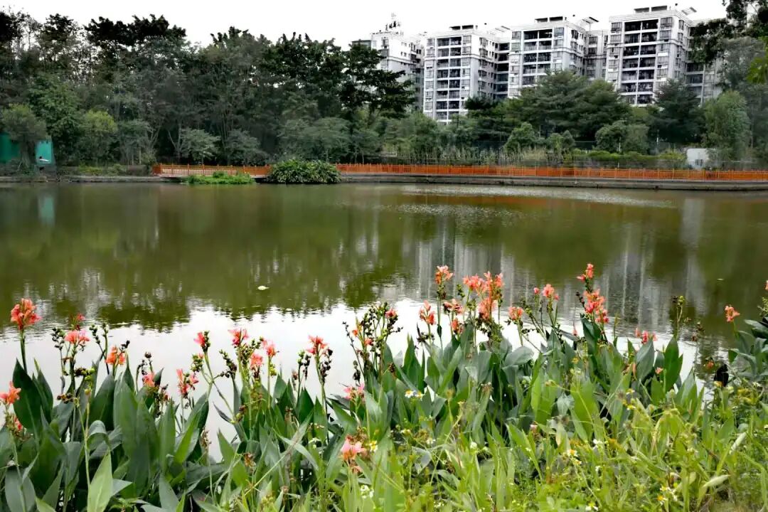 ▲治理后的海仔河水清岸绿,成为居民休闲好去处